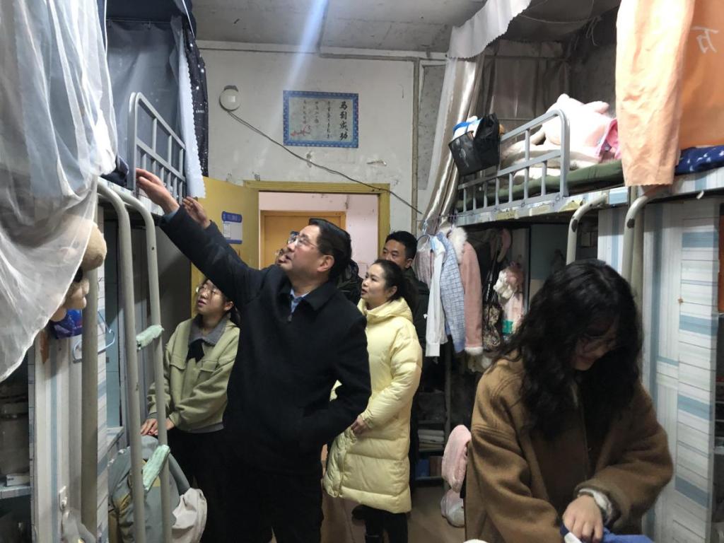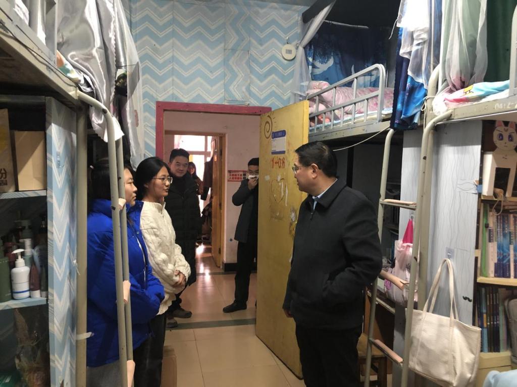 2月27日下午,学校党委副书记邓磊深入学生公寓了解新学期开学学生返校情况及公寓安全等各项准备工作,学生工作部(处)部(处)长方云霞、副部(处)长徐杰、赖申昊及公寓管理办公室相关人员参加检查。