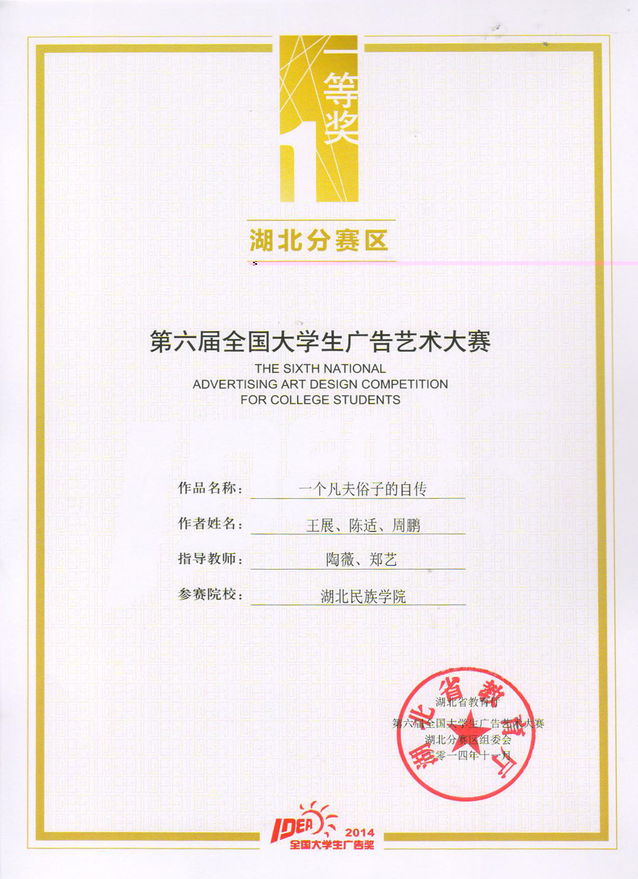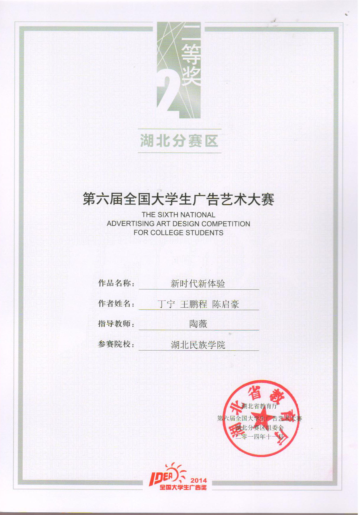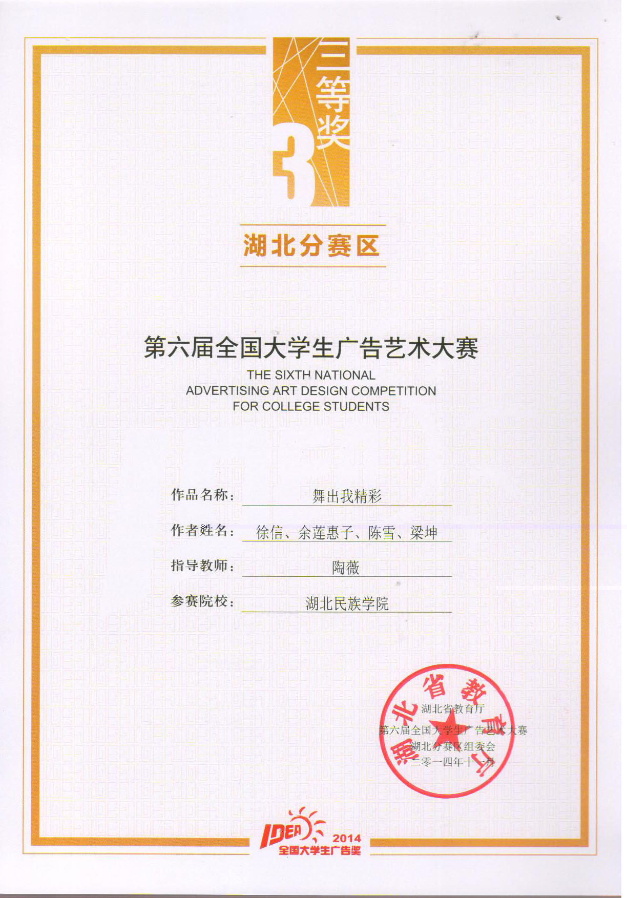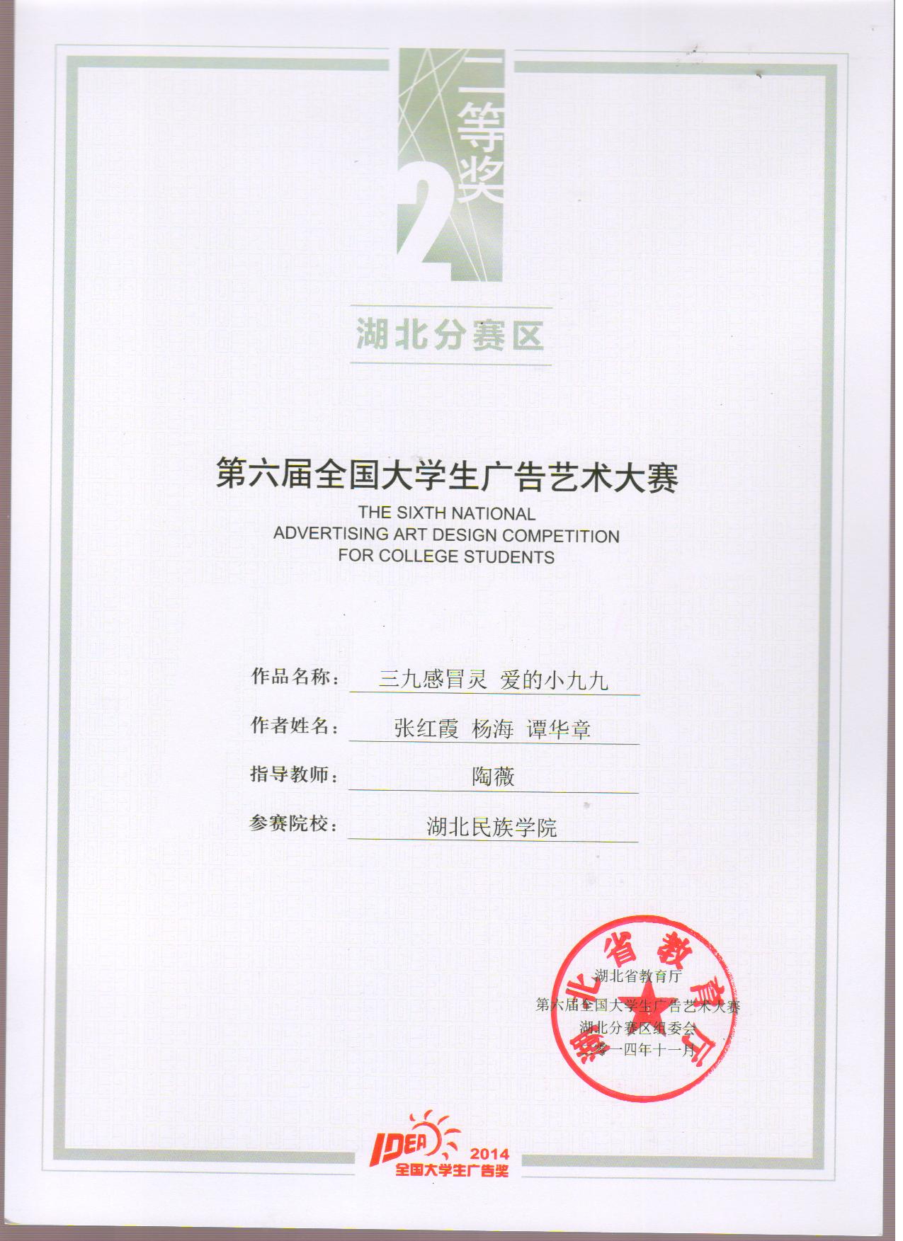 文学与传媒学院学生在第六届全国大学生广告艺术大赛湖北分赛区中获得多项奖项