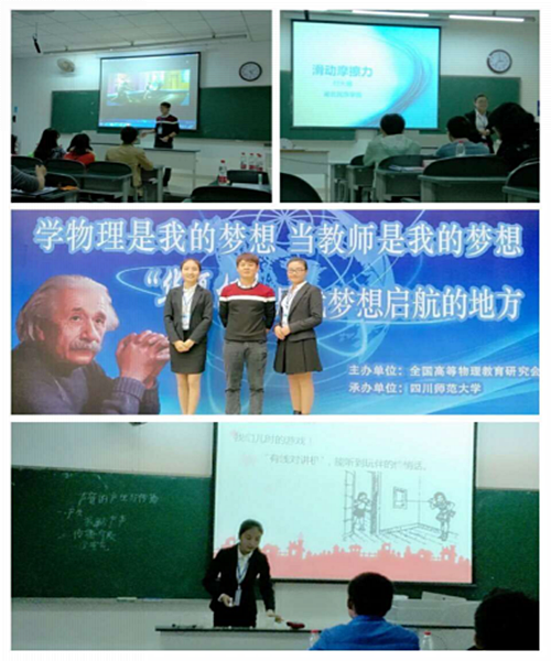 此次大会由全国高等物理教育研究会主办,四川师范大学承办。全国36所高校的200余名师生及53所中学的64名教师参加了本次活动。其中,225名选手(本科生161名,教师64名)参加了教学技能展示。通过教学设计、课件、即兴讲课、讲课、板书和演示实验等形式全方位地展现了高校物理师范教学技能和中学教师的整体水平。(责任编辑 蹇小平 丁丽)