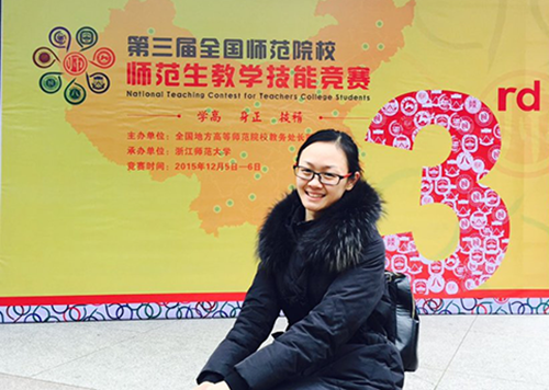 本网讯(通讯员 黄倩)第三届全国师范院校师范生教学竞赛于2015年12月6日落下帷幕,我院汉语言文学专业13级学生黄倩代表Beat365征战,经过与来自全国师范院校多名选手的激烈角逐,最终荣获语文组三等奖。这是Beat365学生首次参加该项国家级学科赛事并获奖。