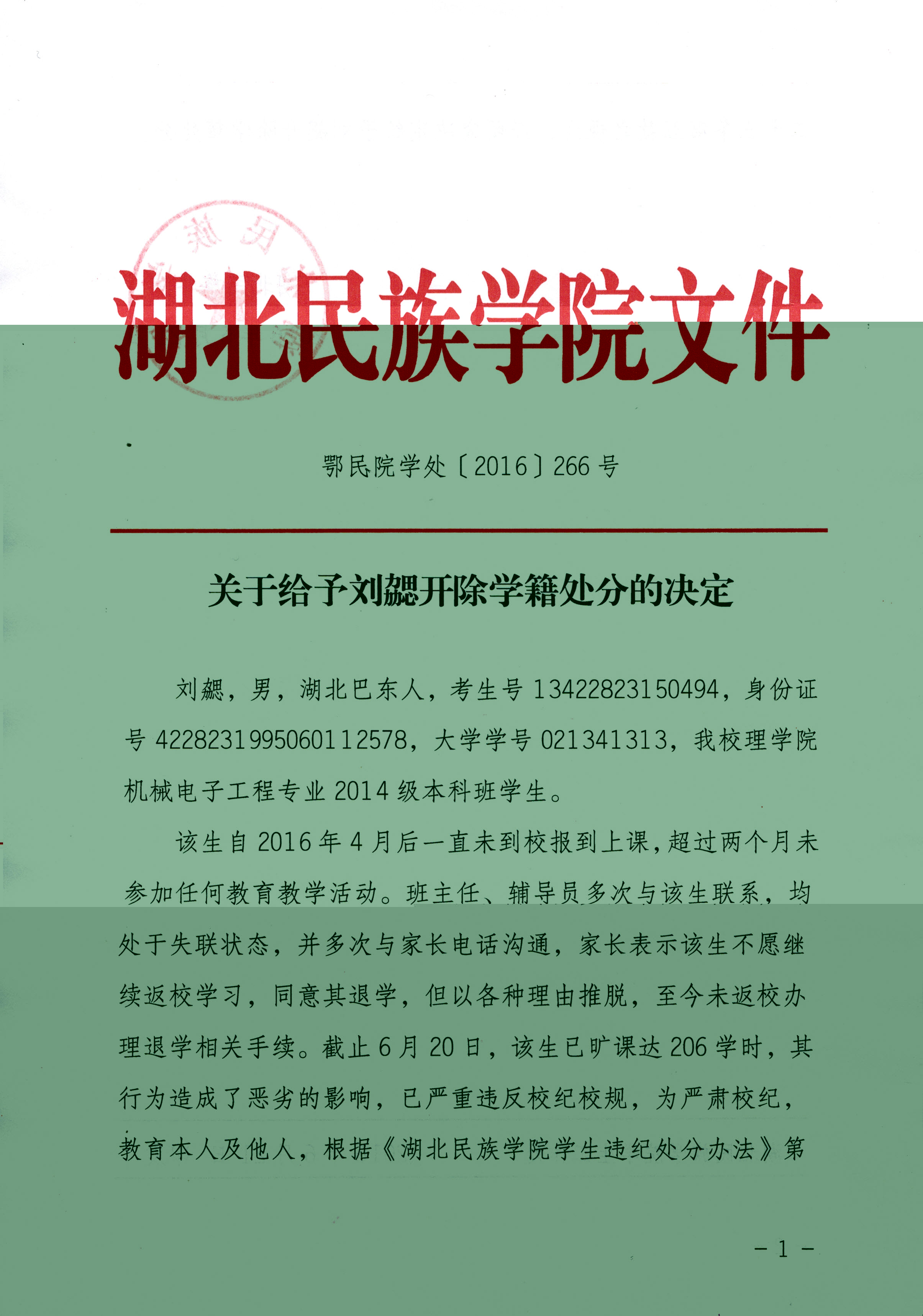 关于给予刘勰开除学籍处分的决定2.jpg