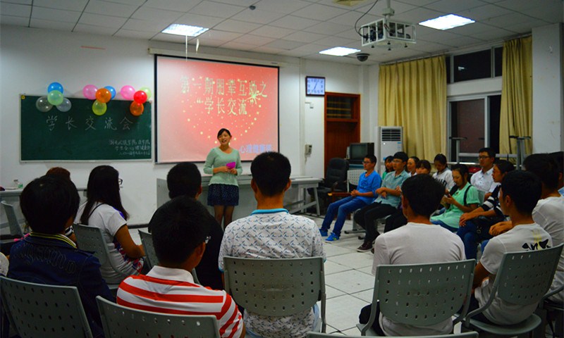 交流环节,就新生提出的“怎样调整自己才能迅速的度过大学迷茫期?”、“参加团委、学生会等组织需要经过哪些程序?”、“所学的专业并非自己所喜欢,应该以怎样的心态来面对?”、“参加一些学生组织会不会与做兼职产生时间上的冲突?”等问题,大二、大三的学生结合自身经历进行了详细的解答。