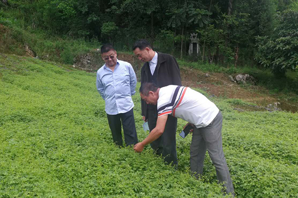 秦群燕查看绞股蓝生长情况
