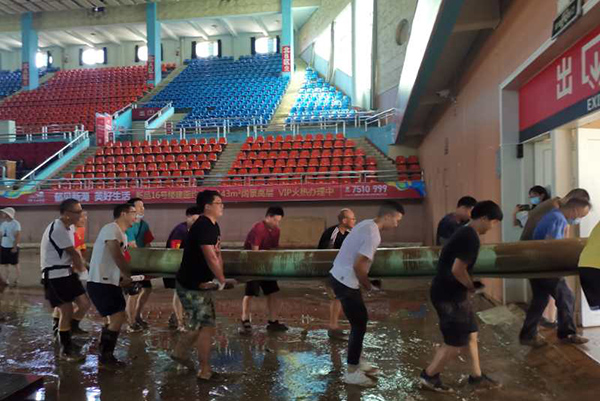 参与恩施市体育馆清淤工作