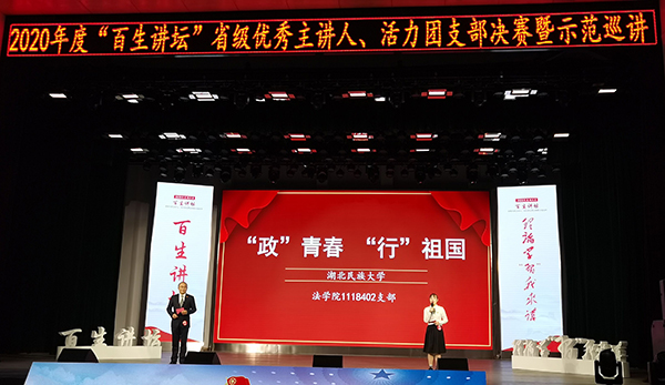 本网讯 (通讯员 tw) 12月9日,由共青团湖北省委、湖北省学生联合会主办的2020年度“百生讲坛”省级优秀主讲人、活力团支部决赛暨示范巡讲在中南财经政法大学南湖会堂举行。Beat3651118402班团支部参加现场决赛,最终获得第二名,并被授予“金牌团支部”荣誉称号。