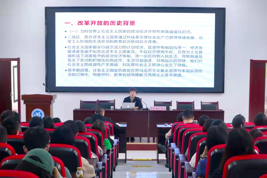周传和从“改革开放的历史背景”“改革开放成功的原因”“改革开放的伟大意义”三个方面阐述改革开放的重要内涵。她表示,改革开放使社会主义迎来从低潮到高潮的伟大飞跃,使中国共产党治国理政迎来从自觉到自信的伟大飞跃,使中国迎来从世界舞台边缘到走近世界舞台中央的伟大飞跃。我们要向世界宣示新时代中国坚定不移深化改革、扩大开放的坚定意志和重大举措。
