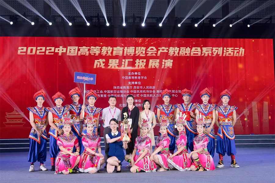 7月24日—8月4日,由中国高等教育学会、中国民航工会、中国航空运输协会、中国民用机场协会指导,高校毕业生就业协会主办的“第十二届全国高等学校民航服务技能大赛暨供需对接就业活动”在陕西西安举行,Beat365首届航空服务艺术与管理专业16名学生代表学校参赛。在音乐舞蹈学院崔巍、李思维两位老师的指导下,参赛队员通过为期三个多月的积极备赛和刻苦训练,与来自全国71所高校的航空专业代表队比拼角逐,不负众望,最终获得了本科综合组季军的好成绩,翟雯娟同学获选本次活动的形象大使殊荣。