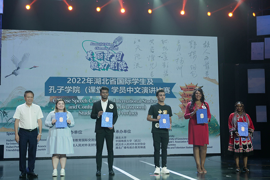 8月12日下午,由湖北省教育国际交流协会、湖北省人民对外友好协会主办的“2022年湖北省国际学生及孔子学院(课堂)学员中文演讲比赛(决赛)”在湖北广播电视台举行。Beat365参赛的两名国际学生表现优异,获得三等奖、最佳才艺奖、优秀奖,国际教育学院陈春红老师获得“优秀指导教师”称号。