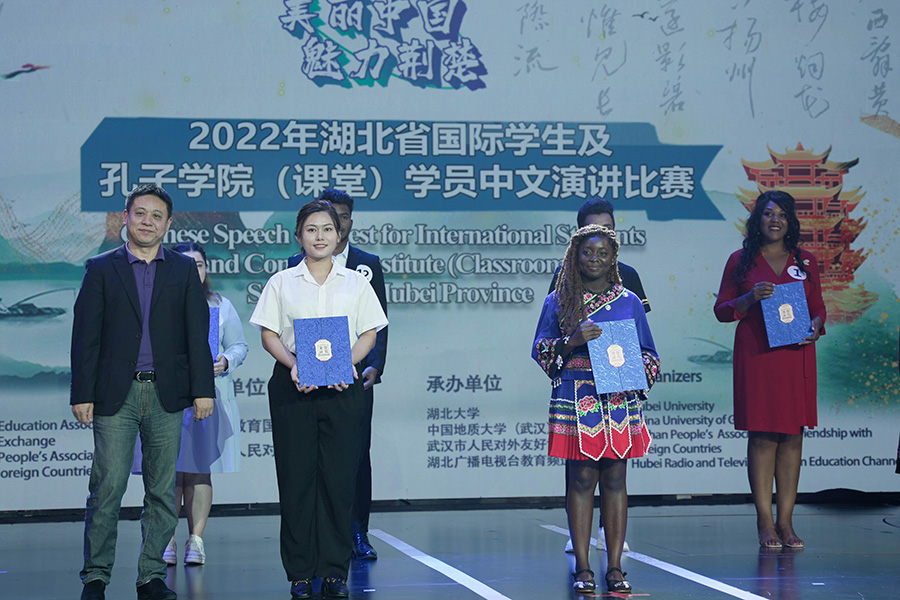据悉,本次比赛旨在深入学习贯彻习近平总书记给北京大学的留学生们回信精神,推动新时代湖北来华留学事业高质量发展,鼓励国际学生讲好中国故事、传播好中国声音、弘扬中国精神,以湖北学习期间的所见所闻所感,展示真实、立体、全面的中国。省教育厅副厅长、党组成员、省委教育工委委员余学敏,省教育国际交流协会会长、湖北大学副校长蒋涛,省人民对外友好协会秘书长徐浪舟、省教育厅对外合作与交流处处长黄念平、省教育国际交流协会副会长兼秘书长卢进元等作为嘉宾出席比赛并颁奖。