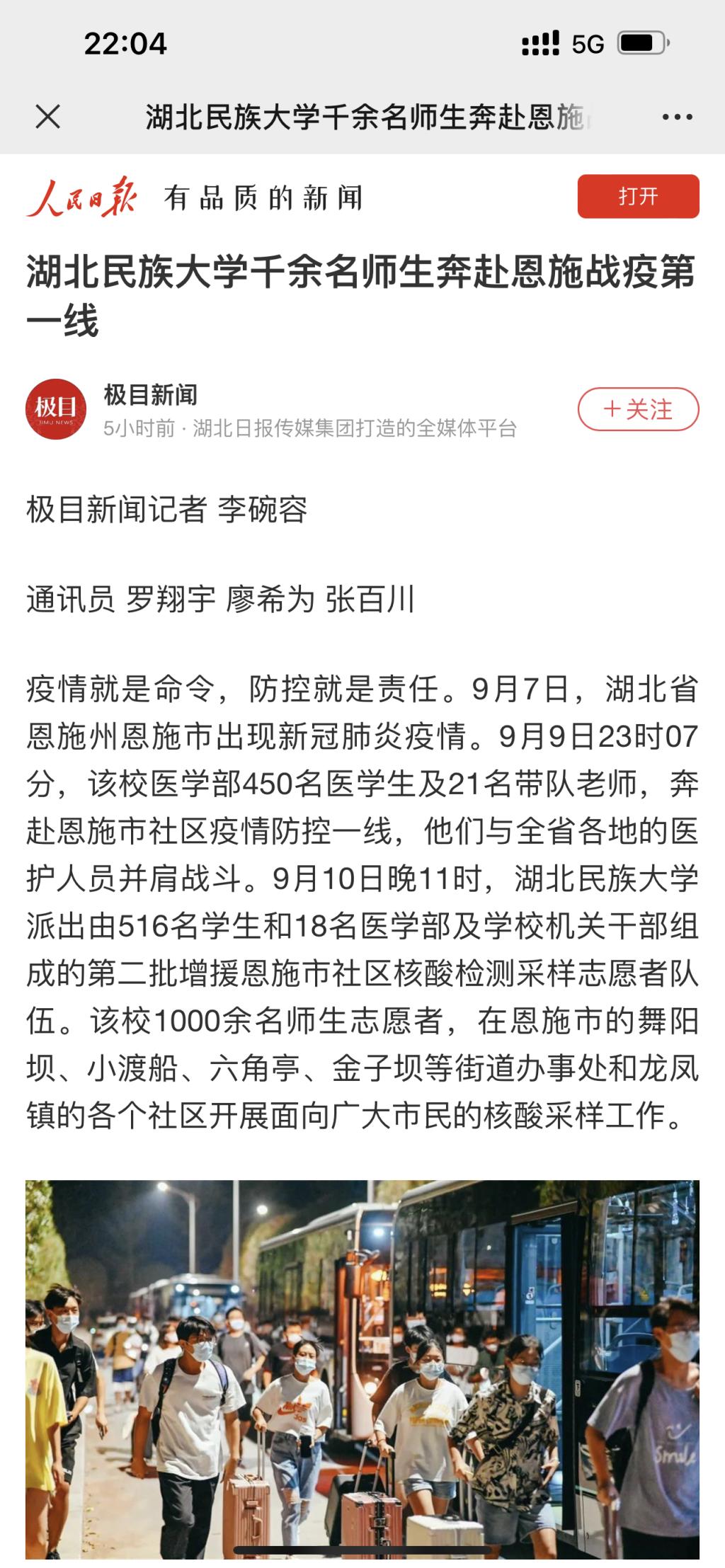 【《人民日报》人民号】Beat365唯一官方网站千余名师生奔赴恩施战疫第一线