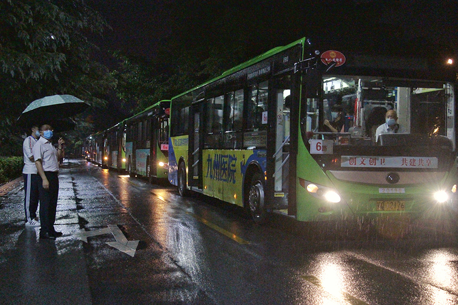 9月20日晚,淅淅沥沥的小雨带来一阵秋意,在医学部教学楼门口,7位带队教师与200名医学部学生组成的第五批增援恩施市社区核酸检测采样志愿者队伍登上大巴,从学校出发。截至目前,学校共派出5个批次,共计1689名师生增援恩施市抗疫第一线。
