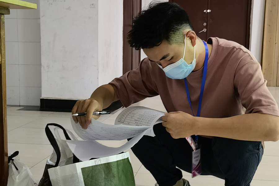 为确保核酸采样工作规范有序进行,医学部全体辅导员在核酸采样点划分和张贴1米距地贴、设置警戒线、摆放锥桶、采样点功能区设置,每日对采样流程、扫码登记、信息查验、个人防护、样本保存转运、医废处理及环境消杀等细节进行严格把关。仅开学后的“七天五检”,医学部学工办就已汇总登记了1000余份的班级学生采样信息表。