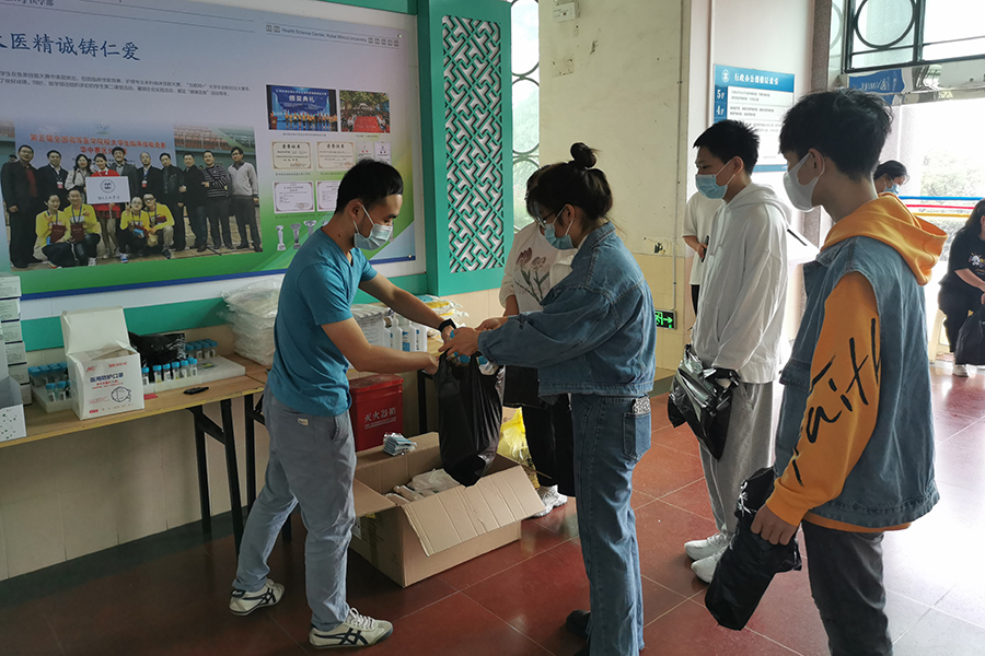 校内疫情防控工作是医学部学生志愿者的主战场。如果说临时召集医学生支援抗疫前线是一次“突击战”,那么组织校内志愿者采集核酸、完成常态化的疫情防控工作则是一场“持久战”。自8月31日以来,医学部0521201和0521202班60名实习生便被分配到校内老干处和其他二级学院采样点,担负起了为全校2万余师生进行核酸检测的繁重任务,自突发疫情以来,她们更是毫无怨言、无私奉献、出色地完成了学校安排的全员核酸检测任务。9月17日,医学部44名参与校内替换轮值的志愿者也加入了全员核酸检测的工作中。同时,医学部也选派了若干名学生志愿者进行扫码、发放咽拭子、维持秩序。这些校内志愿者们以“敬佑生命、救死扶伤、甘于奉献、大爱无疆”的崇高精神为遵循,秉承仁爱初心,以己所学,回馈社会,在疫情防控、危重救助、志愿服务、健康宣讲等方面,也涌现出很多典型事例,他们用实际行动践行了“健康所系,性命相托”这一崇高誓言,是新时代的最美大学生。