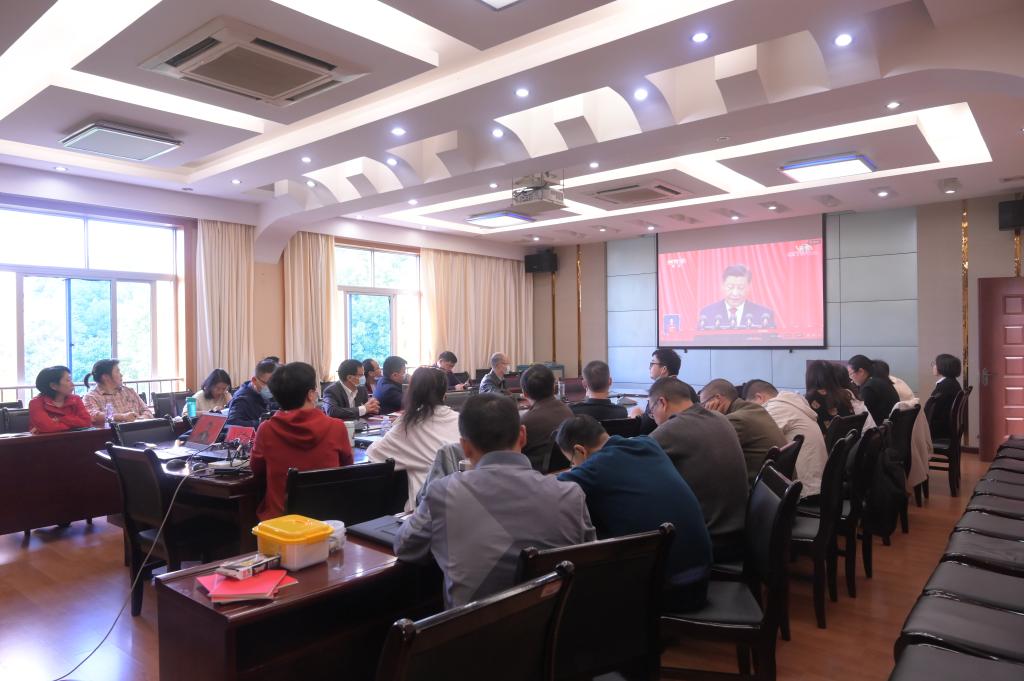 踔厉奋发新时代,勇毅前行新征程!10月16日上午,举世瞩目的中国共产党第二十次全国代表大会在人民大会堂隆重开幕,校属各单位通过各种形式组织广大师生收听收看党的二十大开幕会盛况。桂花园里,师生们按照疫情防控的规范,在各会议室、各教学楼内,有序集中收看党的二十大开幕会盛况,认真聆听、学习、热议习近平总书记的报告。
