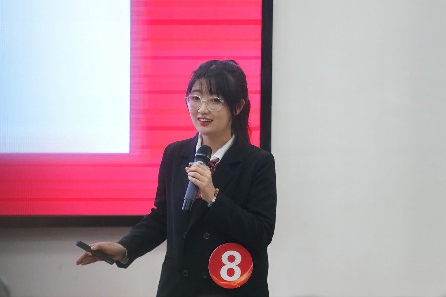 文学与传媒学院一号选手陈章表示,在学习方面,核心专业课成绩名列前茅;在实践创新方面,文学作品成果达十余项;在服务社会方面,她多次参与支教等公益活动,并呼吁大家关注特殊群体的幸福和生活状态。