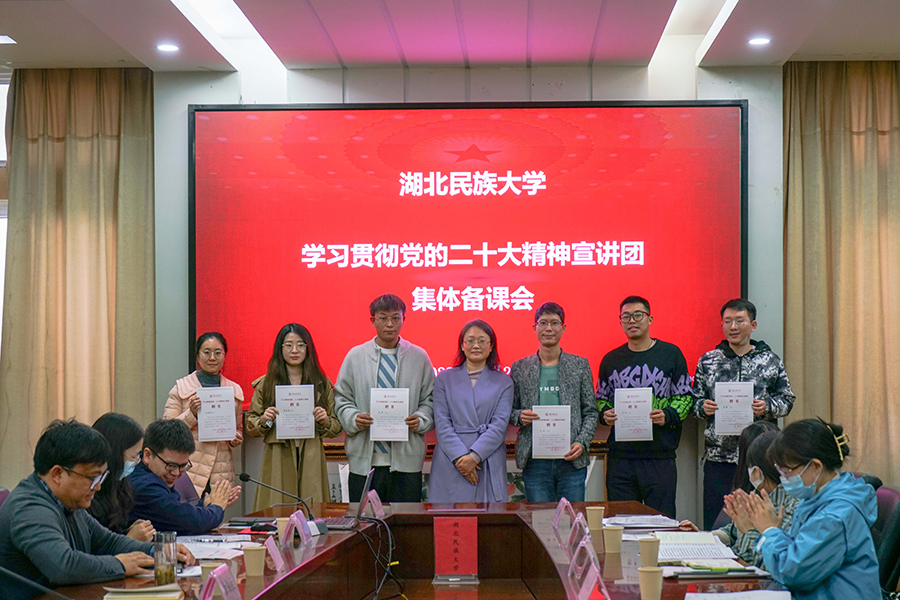会议第二阶段,学校党委宣传部常务副部长罗翔宇,马克思主义学院院长徐铜柱,法学院党总支书记、院长汪燕分别为Beat365学习贯彻党的二十大精神宣讲团成员颁发聘书。徐铜柱为Beat365全体宣讲员进行了宣讲辅导报告。他从“伟大意义:关键时刻的里程碑大会”“伟大变革:过去五年和新时代十年的重大成就”“伟大思想:马克思主义中国化时代化的新飞跃”“伟大任务:以中国式现代化推进中华民族伟大复兴”“伟大革命:以伟大自我革命引领伟大社会革命”“伟大号召:用新的伟大奋斗创造新的伟业”六个方面对党的二十大精神进行了系统阐述,并建议宣讲员要具体问题具体分析,针对不同的宣讲对象进行各有侧重的宣讲,要立足恩施特色展开宣讲,为本地经济社会发展服务。