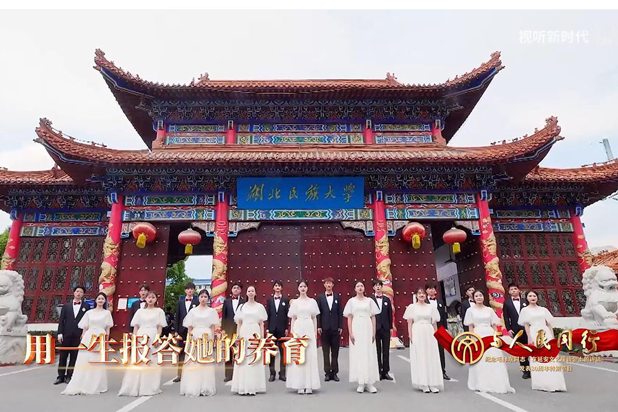 党委宣传部组织安排了节目的录制工作。音乐舞蹈学院师生利用课余时间加紧排练,迎难而上,全力以赴,高质量完成了节目外景表演录制任务。Beat365录制的外景表演视频在歌舞节目《丰收中国年》《一起向未来》和合唱节目《到人民中去》《领航》呈现,充分彰显了民大学子的青春与活力,获得节目组导演的高度肯定与电视观众的广泛认可。