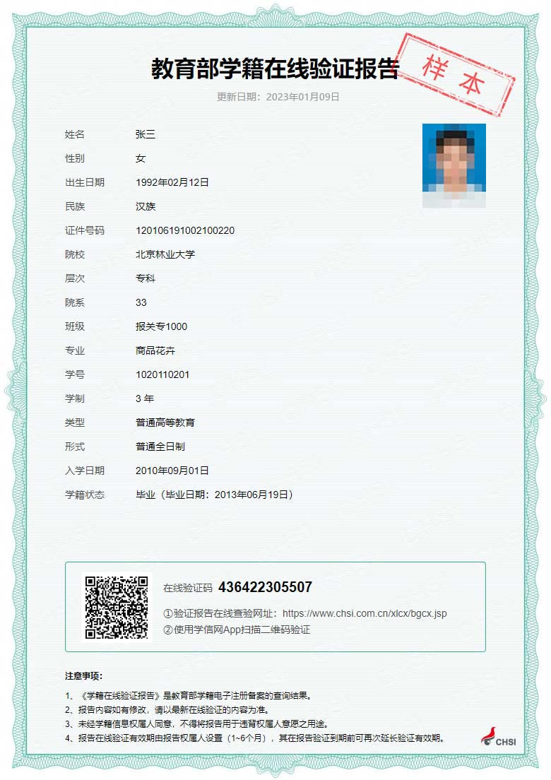 2001年以后的毕业生)或《中国高等教育学历认证报告》(2001年以前的毕业生)或教育部留学服务中心出具的《国外学历学位认证书》。