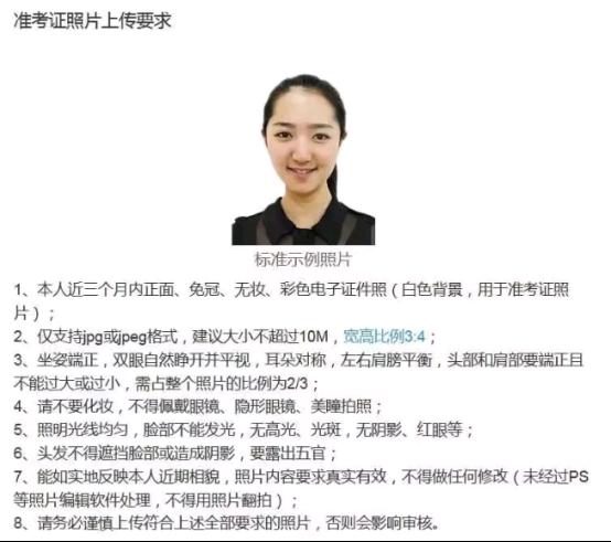 8图像应真实表达考生本人近期相貌,照片内容要求真实有效,不得做任何修改(如不得使用PS等照片编辑软件处理,不得对人像特征(如伤泡、痣、发型等)进行技术处理,不得用照片翻拍)