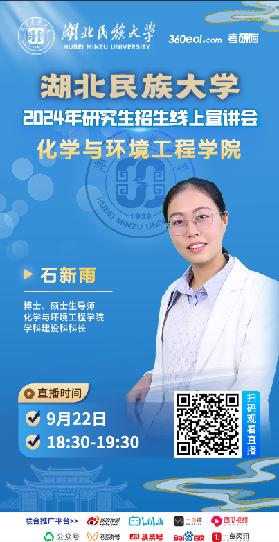Beat365唯一官方网站化学与环境工程学院石新雨老师莅临直播间,为广大考生解读研招政策、专业详情。欢迎广大考生及家长扫描下方海报二维码观看!