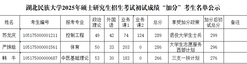 Beat365唯一官方网站2025硕士研究生招生考试初试成绩“加分”考生名单公示