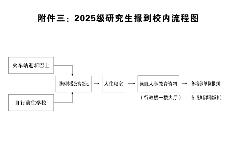 火车站:于9月3日7:00-17:30在恩施站站前广场出口处设置“2025级研究生报到接站点”。新生凭录取通知书乘坐迎新大巴到校。新生乘坐迎新大巴到宿舍区放置行李后,再步行至报到点(行政楼1楼大厅)和各培养单位报到。