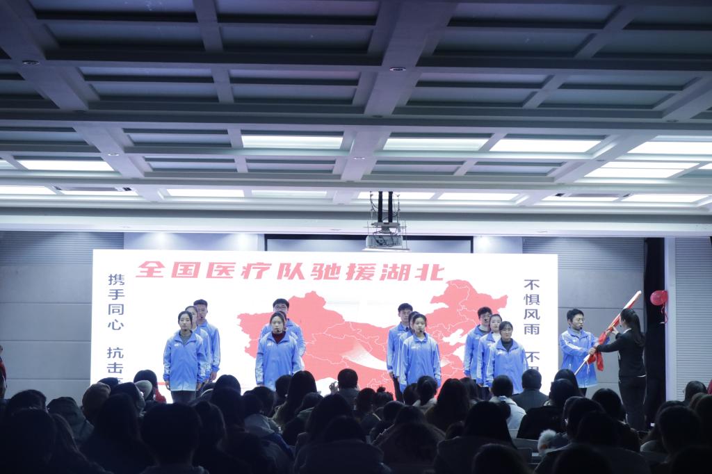 其中,学生第一党支部带来的以民大附属医院护士王娟为原型而改编的短剧《黑夜里的一束光》,回顾了在艰难的抗疫前线,一名普通共产党员的真实抗疫经历,故事情节完整、VCR的音视频代入感强,表演者情感真诚感人,令在场许多观众潸然泪下。最终,以9.52分夺得本次参演节目的桂冠。
