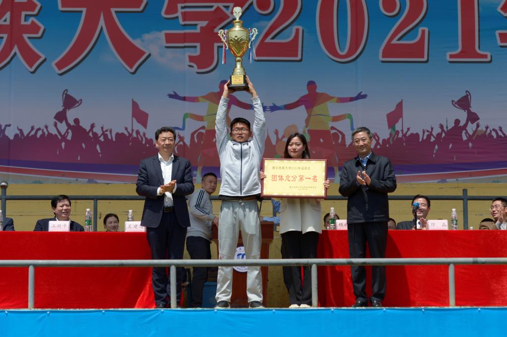 学校党委常委田景福致闭幕词。他首先代表学校党委、行政和运动会组委会向取得优异成绩的运动员表示祝贺,对为运动会顺利举行付出辛勤努力的裁判员、工作人员表示感谢。他希望广大师生将敢于拼搏勇于争先的精神继续保持和发扬下去,投入到学习和生活中。保持良好运动心态、健康体魄状态,为建设特色鲜明的民族大学做出更大贡献。