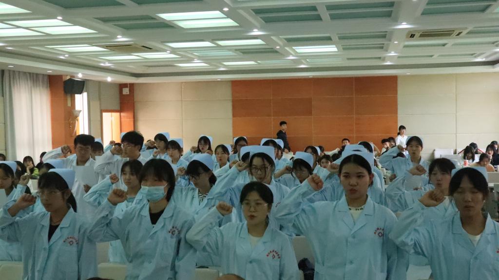 活动在特邀嘉宾王鑫同学的《等风雨经过》中拉开序幕。经过前期评选,共有12人入围决赛。本次决赛共有参赛选手分组护理知识演示和基本护士礼仪展示两个环节。护理知识演示将由选手们通过模拟演练向评委们展示急救的项目,操作方法等内容。在演练过程中,一号,二号选手展演的心肺复苏急救术让现场观众真切感受到急救现场的紧张和争分夺秒,真正让观众感受到了“时间就是生命”。生命体征是标志生命活动存在与质量的征象,是评估身体的重要项目之一,五号、六号、七号选手向大家展示了生命体征检测技术标准以及其对于诊断的重要性,获得观众的一致好评。在护士基本礼仪展示中,参赛选手分别向大家展示了整理仪容、鞠躬、蹲姿、拾物资、病历夹等基本护理工作和礼仪。在全体选手和护理专业学生共同宣誓时,更让大家感受到了护理专业的庄严。最终五号选手耿祥莲在测量患者基本生命体征护理演示和护士礼仪展示中凭借优异表现获得93.27的最高分,荣获本次比赛一等奖。