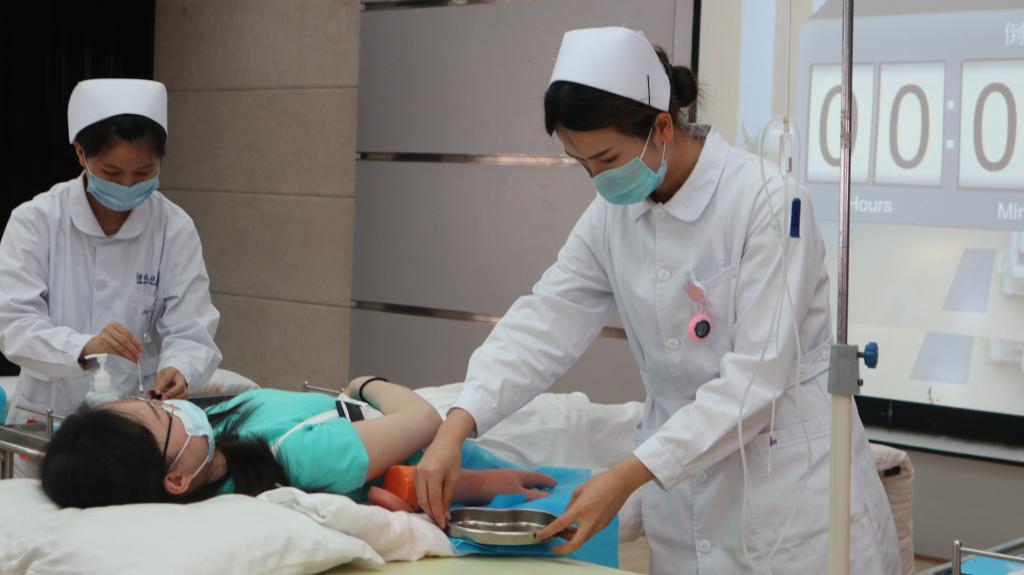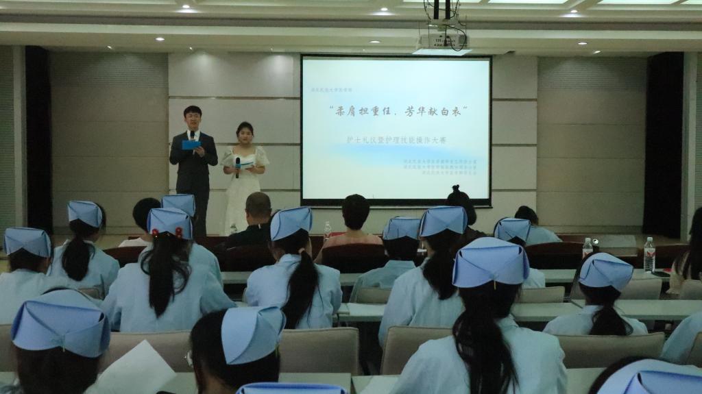 本网讯(通讯员 夏雪花 曾凡轩/文 摄影 杜泽鹏 彭家乐/摄)为了弘扬优秀的护士礼仪精神,并提高护理专业学生的礼仪修养和专业素养。5月30日,由医学部学生工作办公室、医教协同办公室和学生会办公室联合举办的“柔肩担重任,芳华献白衣”第三届护士礼仪暨护理技能大赛在德智楼三楼多功能会议厅举行。Beat365唯一官方网站附属民大医院老师谭荣、谭伟宁、唐植鹤、医学部副主任郭有锋、医学部学生工作办公室周家頔应邀出席并担任评委。现场观众一百余人。