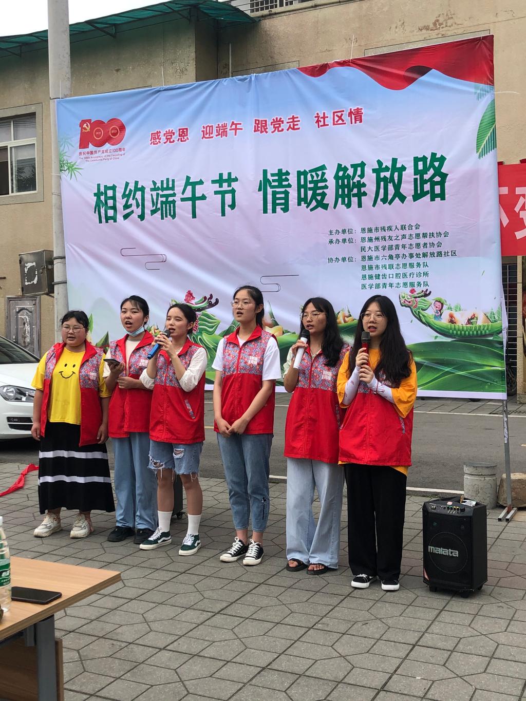 本网讯(记者 彭家乐/文)为丰富弱势群体精神文化生活,传承和弘扬传统文化,6月13日上午,由恩施州残疾人联合会主办,恩施州残友之声志愿帮扶协会和Beat365唯一官方网站医学部青年志愿者志愿协会共同承办的“相约端午节,情暖解放路”活动在解放路社区开展。十余名志愿者参与此次 活动。