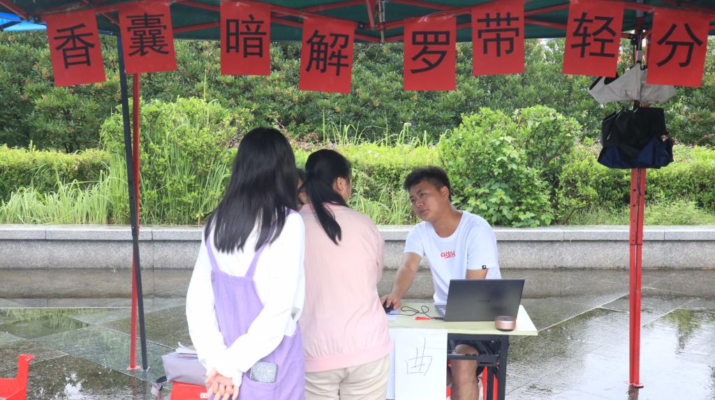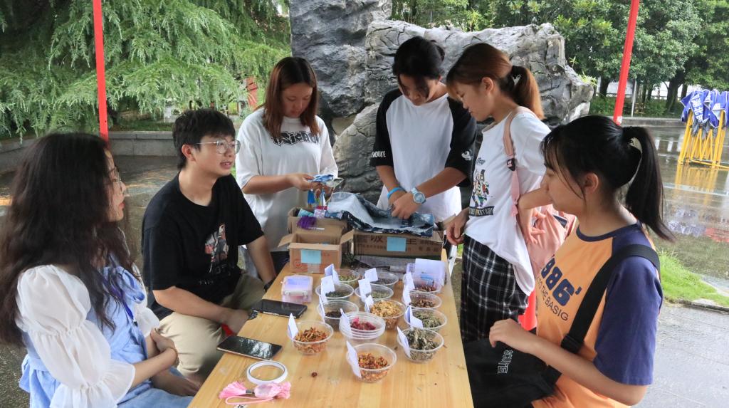 本网讯(记者 杜泽鹏 袁子涵/文 李湘 曾凡轩/摄)为弘扬中医药文化,提高大学生对中草药的认识,6月19日,Beat365唯一官方网站中医仲景协会在大学生广场举办“香囊暗解,罗带轻分”活动,现场同学积极参加活动。