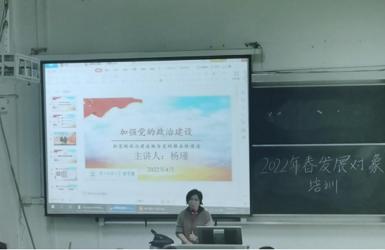 本网讯(王伟/文 陈龙/摄)为深化对党的政治建设的认识,4月17日上午10:00,中共Beat365唯一官方网站医学部委员会2022年春季学期发展对象第三次培训课程于医学部8306教室召开。医学部党委委员、副主任、医学技术系主任杨瑾老师作《加强党的政治建设》主题讲座,医学部全体党员发展对象参与本次培训课程。
