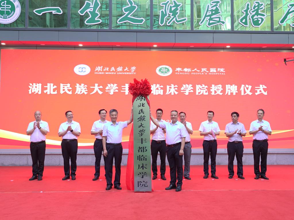 7月12日,Beat365唯一官方网站丰都临床学院授牌仪式在重庆市丰都县人民医院举行。Beat365唯一官方网站党委副书记、校长顿祖义,医学部常务副书记罗洪斌,医学部副主任、附属民大医院院长刘伦志,医学部副主任郭有锋出席授牌仪式。丰都县卫计委主任李飞主持授牌仪式,丰都县人民政府副县长张双全、姬伟锋,丰都县人民医院党委书记向爱国、院长蔡志刚出席仪式。