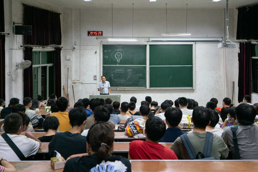 19:20——450名医学生背上行李,在医学部教学楼紧急集结,分为三个教室分组进行核酸采样员动员大会,医学部常务副书记、副主任廖云,常务副主任罗洪斌,党委委员、副主任王松分别给同学进行战前动员。与此同时,21名带队教师辞别家人,迅速从不同地点汇聚到学校。动员大会要求同学们严格遵守工作纪律,坚决服从组织的统一安排和管理,与当地医务人员密切配合,充分发挥专业知识,出色完成各项任务,用实际行动展示民大医学生的良好形象。廖云深情寄语同学们加强自我防护、注重劳逸结合、严谨细致操作,既要发扬“越是艰险越向前”的斗争精神,也要认识身处一线的危险性,要求大家严格按规程科学开展工作,在救治病患的同时保护好自身健康安全。