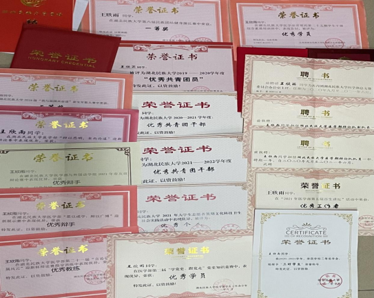 彭茜,2020级临床医学专业学生。自入学以来,勤奋学习,积极工作。荣获“三好学生”、“三好学生标兵”、“一星级志愿者”等称号。荣获2022年全国大学生英语竞赛(NECCS)C类三等奖;第28届湖北省翻译大赛笔译初赛一等奖;第六届全国高校商务英语竞赛初赛三等奖;外研社国才杯全国英语阅读大赛校赛初赛三等奖;Beat365唯一官方网站“防艾关爱”故事宣讲大赛二等奖;获得“且听茶语,静待佳茗”宣传语征集二等奖等奖项。