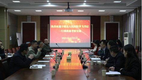 本网讯 (记者 蒋青青/文 蒋青青/摄 通讯员 唐红旺/摄)12月5日,丰都县人民医院党委书记李飞,副院长余福东、刘洪军、田山槐一行等7人来我部考察交流。医学部党委常务副书记刘木球,医学部常务副主任罗洪斌,其他在家部领导,以及各科室负责人热情接待了李飞一行并进行了亲切交流与深入座谈,会议由刘木球主持。