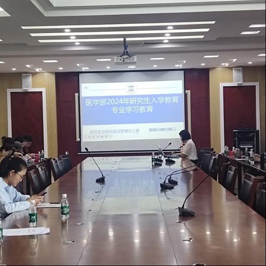 “金风摇落千林果,丹桂飘香满校园。”9月6号上午,医学部在七号会议室举行2024级研究生开学典礼及入学教育。医学部67名2024级硕士研究生满怀希望与激情,踏上人生新的赛道,开启青春新的篇章。