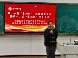 第三阶段首先是医学影像技术专业负责人向辉华发言,他高度评价了同学们在“泰山杯”中的表现,并鼓励大家继续努力,为专业的发展贡献自己的力量。随后,王松在发言中首先对在第十一届“泰山杯”中取得好成绩的同学们表示衷心的祝贺,他提到,这些成绩的取得离不开每一位同学的努力拼搏以及老师们的精心指导。其次,他感谢各位同学和老师们为医学影像技术专业发展做出的努力。正是因为大家齐心协力,才使得该专业在学科建设、人才培养等方面不断取得进步。他强调“泰山杯”在医学影像技术专业领域的重要分量,这一赛事不仅是同学们展示自身实力的舞台,更是推动整个专业发展的重要契机,同时为下一届“泰山杯”的启动做了相关工作部署,希望同学们能够早做准备,积极参与到赛事的训练当中。最后祝愿下一届参加“泰山杯”的同学能取得更加突破性成绩,希望同学们能够传承学长学姐们的奋斗精神,勇攀高峰,为医学影像技术专业赢得更多的荣誉。
