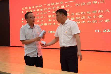 随后,还进行了《中国共产党纪律处分条例》知识问答。知识问答环节从新修条例的根本、党纪工作原则以及监督执纪“四种形态”为着手点,进一步增强教职工对条例的学习与理解。