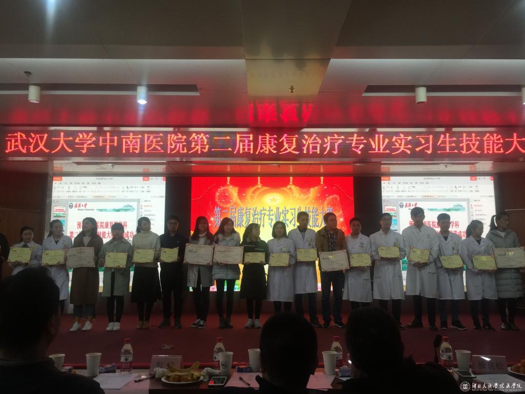 11月19日,江城武汉气温骤降,由武汉大学中南医院主办的“第二届康复治疗专业实习生技能大赛”在中南医院门诊部13楼1号会议室火热进行,共有由湖北民族学院、湖北职业技术学院、武汉大学医学职业技术学院等12所院校33名同学组建的11支队伍参赛进行了康复技能的大比武。湖北民族学院医学院有5名实习生分为两只队伍参加了比赛,分别囊获了特等奖和三等奖。