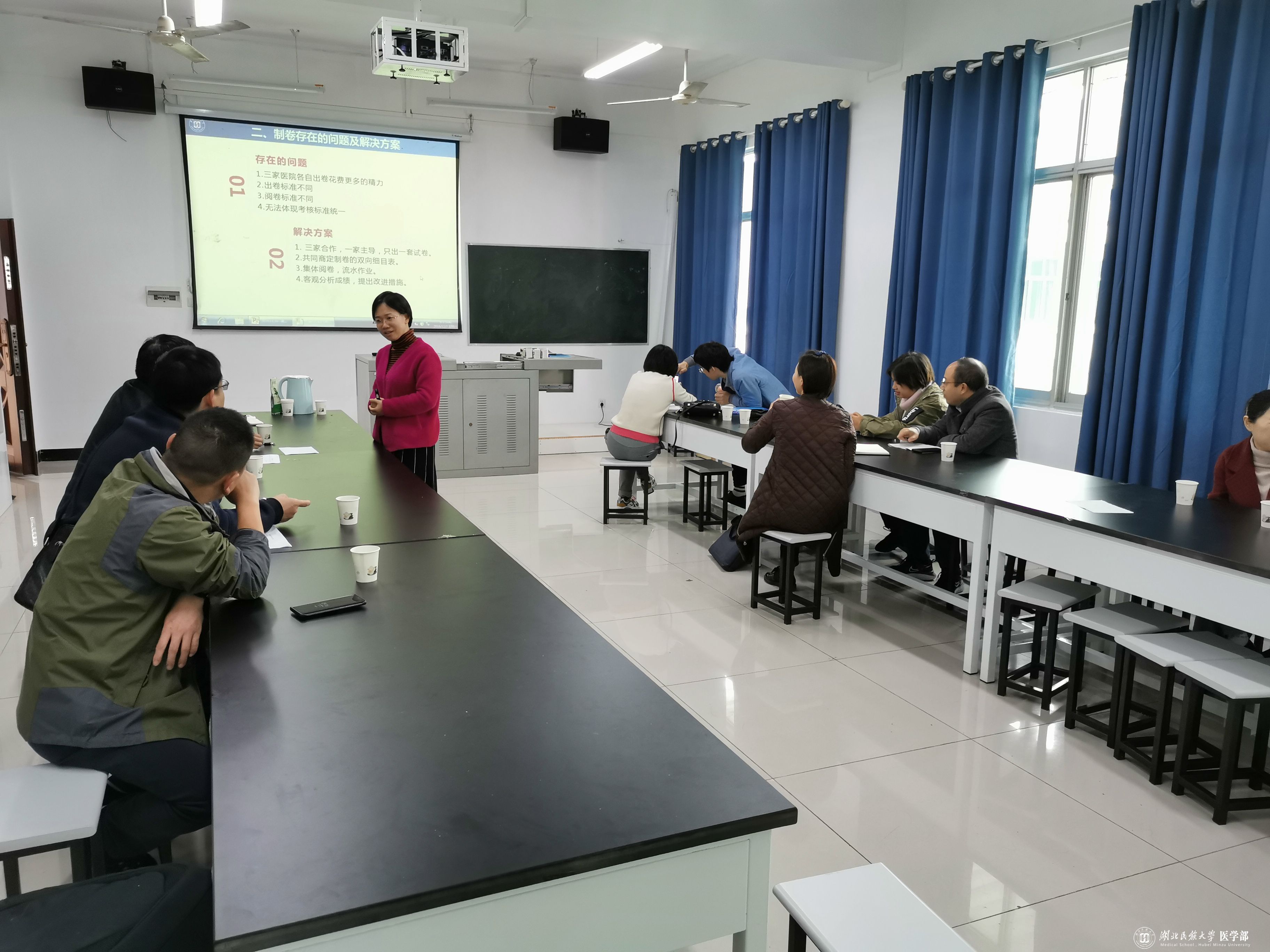 医学部根据教育部临床医学专业认证专家组上个月对Beat365临床医学专业认证工作的初步意见,积极开展整改工作。于2019年11月16日上午,医学部教学管理办公室召集各临床医学院的内科学、外科学、妇产科学、儿科学教研室的主任、秘书在医学部五楼会议室商讨临床教学同质化问题。会议由医学部分管教学工作的副主任陈龙菊主持。陈主任从教学同质化的含义、目前存在的问题及拟解决方案、组建课程组的理念及方案以及当前需要推进的工作4个方面与参会人员进行了广泛深入地交流。参会人员踊跃发言、深入探讨,并按照会议议程抽签选出了2019-2020学年度内科学、外科学、妇产科学和儿科学课程组的组长所在单位,与会者一致同意课程组组长单位每学年轮转一次。陈主任特别指出了近期需要立即开展的2019年秋季学期组卷工作,要求由相应的课程组组长牵头组织三家临床医学院的相应科室的教学主任及教学秘书,确定本学期考试课程的命题双向细目表、出题、组卷及阅卷方式。会议还讨论了手机考试的相关问题。