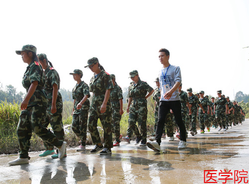 在拉练过程中,同学们互帮互助,苦中作乐,并唱着《学习雷锋好榜样》、《团结就是力量》等军中之歌。一名临床四班的男生说到,“这次野外拉练比我想象中的辛苦,但是多了一份军人的庄严。接下来训练的日子,我会更加期待。”