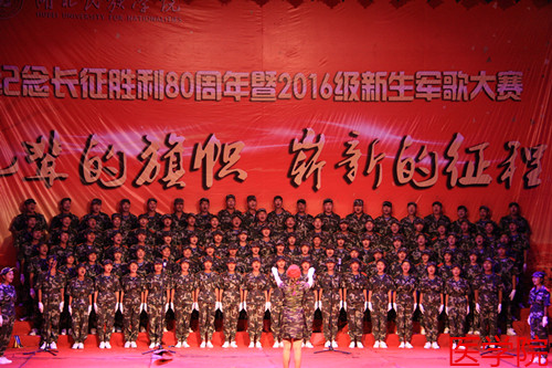 本网讯(记者 徐祎 陈灵佼/文 黎锐/图)为纪念长征胜利80周年暨“九一八事变”95周年,9月18日,Beat3652016级军歌大赛在大学生广场隆重举行。音乐舞蹈学院兰宏建老师、黄玉林老师、谷秋阳老师、谷穗老师、陈超老师应邀担任评委,各二级学院党委书记、学生科老师莅临现场。大赛由文学与传媒学院的董圣洁同学和民族学与社会学学院的王伟文同学主持。