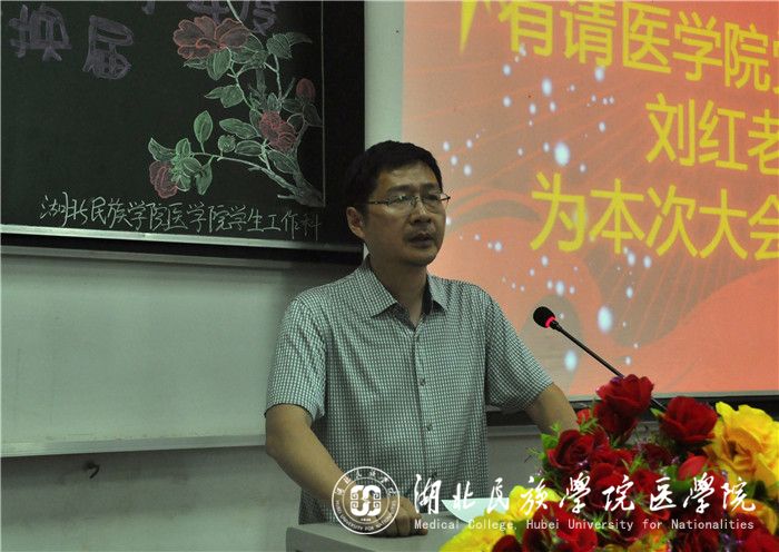 大会第一项,全体起立奏唱国歌。大会第二项,张蕊老师宣读学生组织任职文件,她宣读了我院各个组织及社团的新任干部。接着,大会第三项,我院学生组织新干部代表张雯琛发言,她讲到自己很荣幸能够作为学生干部代表站在台上,同时更是感谢学生科老师的信任,她从自己在组织的成长经历讲起,并承诺在接下来的一年里会更加热爱组织,永葆一颗责任心。大会第四项,我院党委书记刘红书记为本次大会作指导,他向同学们主要谈到三点看法:第一,学生干部要提高认识,端正思想意识,在完成自己的组织工作的同时,学生干部要注重自己的学习成绩。第二,学生干部要"公开、公平、公正",一视同仁对待同学,秉持着为同学们服务的精神,完成自己的工作。第三,要发挥团队精神。最后,刘书记对学生干部们提出殷切希望,期待同学们的优异表现。