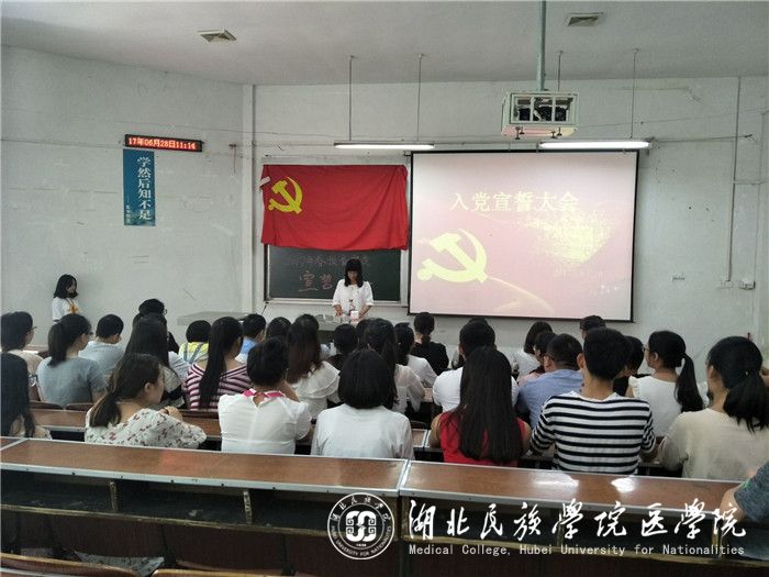 本网讯(通讯员 郭曼/文)6月28日,我院于8102教室成功举行2017年春预备党员宣誓大会。我院党委书记刘红、党委副书记张蕊,学生科彭弥、杨宁、梁丹玉老师应邀出席本次大会。郑娅老师担任本次大会主持,共37名预备党员参与大会。