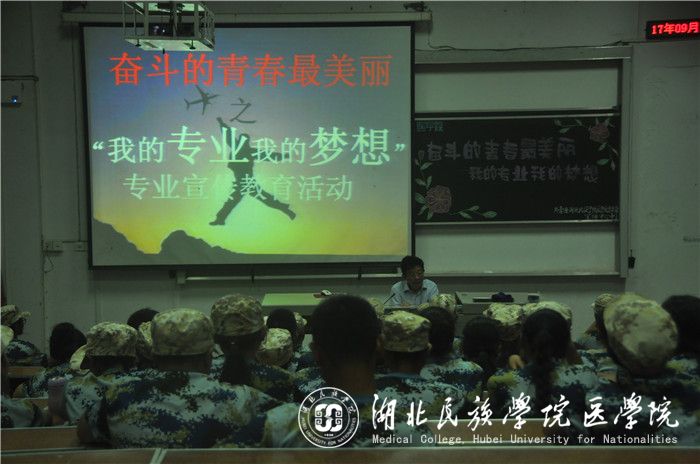 本网讯(记者 杨珂/文 熊慧雯 杨漫丽/摄)9月13日,由我院学生科主办的“我的专业,我的梦想”专业宣传教育活动在医学院举行,副院长罗洪斌、郜红利、邹莉,及专业教师向辉华、杨付明、刘哨兵应邀担任主讲人,为我院学子讲解传授相关专业知识。