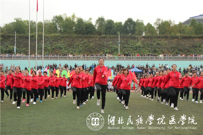 伴随着昂扬的运动会进行曲,各代表队踏着朝阳依次入场,国旗护卫队迈着整齐的步伐,昂首挺胸地走向主席台,医学院展板、彩旗、鲜花方阵及各二级学院方阵队一一入场。