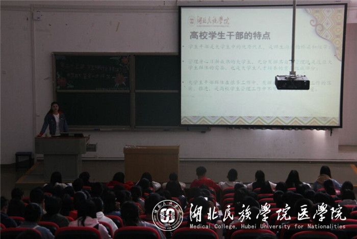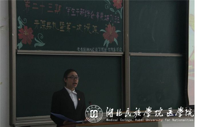 开课典礼在团歌中拉开序幕,向驰、张鼎先后宣读《湖北民族学院医学院学生干部综合素质培训班章程》、《湖北民族学院医学院学生干部综合素质培训班管理办法》, 并明确指出成为学生干部应具备的条件、需遵循的纪律及综合素质考核办法。