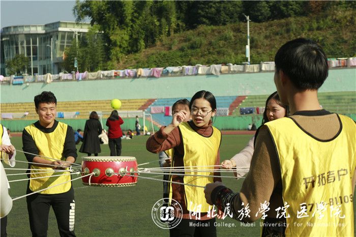 下午1时30分,活动继续进行。下午的培训包括“挑战119”、“颠鼓击球”、“动力圆环”三个游戏。其中,“颠鼓击球”要求每位同学拉着十四环鼓的其中一条绳子,通过绳子控制鼓面颠球。此游戏看似有难度,但参与度依旧很高,参与者充分发挥各自的聪明才智,在收获快乐的同时,也享受到了团队合作带来的满足感和自豪感。更有三个队取得了98个/分的好成绩。至此,同学们的热情彻底被唤起。接着,游戏“动力圆环”更是将他们的热情推向顶峰。随着游戏的结束,本次培训也接近尾声。最后,部分学生干部上台分享收获。他们表示,此次培训不仅让他们明白团体合作共赢精神,集思广益,更懂得了坚持的意义。